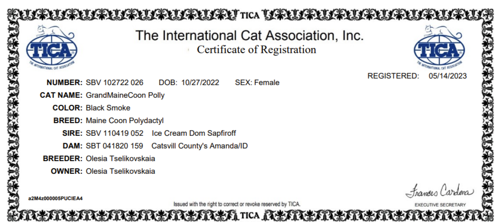 TICA registered